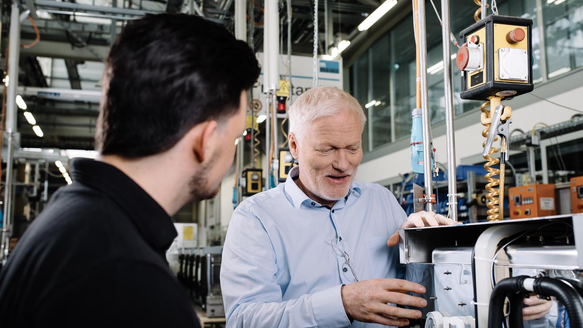 Das Team der Qualitätssicherung prüft bei unseren Maschinen sämtliche Bauteile sowie Komponenten und behält dabei die relevanten Normen und Vorschriften immer im Blick.